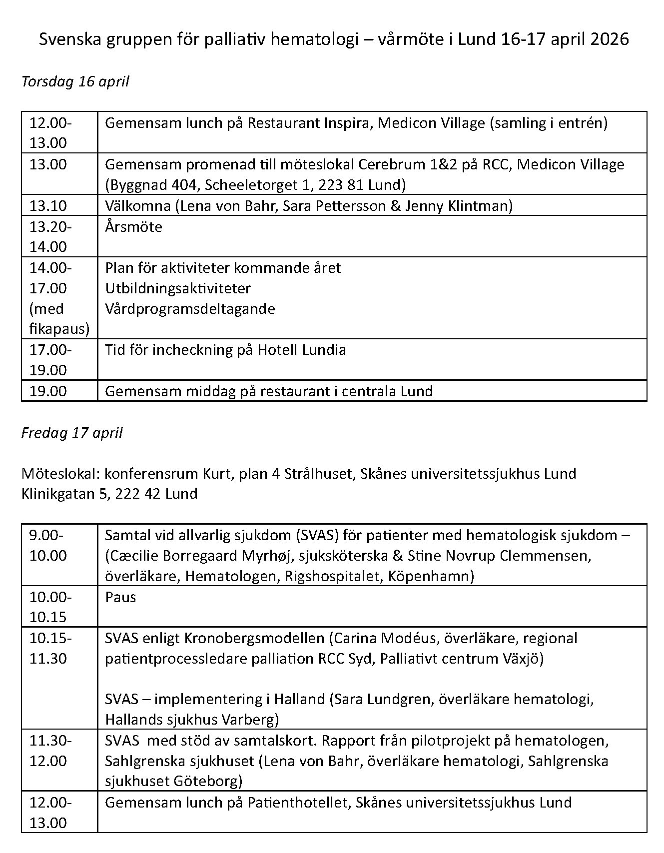 Svenska gruppen för palliativ hematologi (SGPH) årsmöte 16-17 april